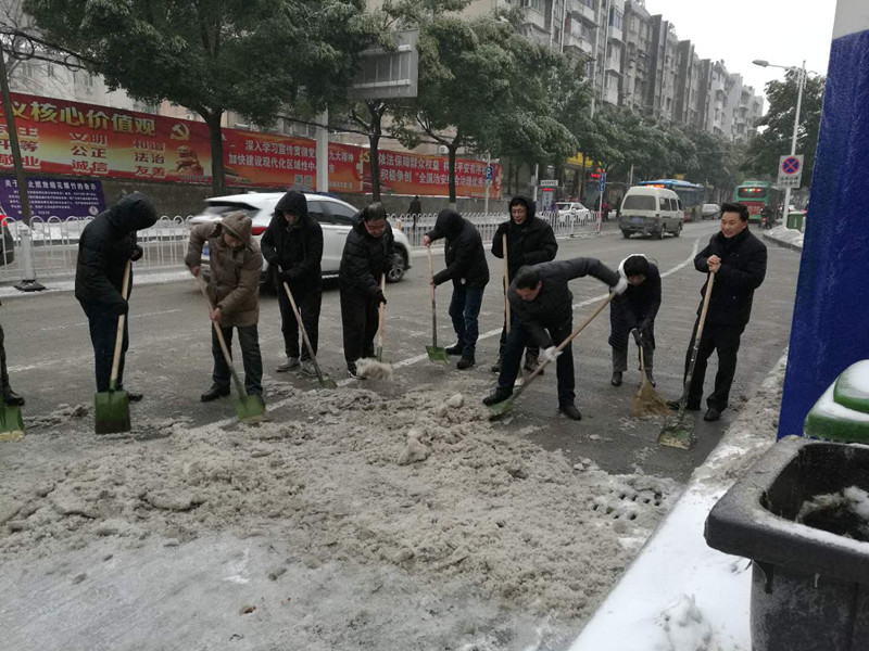 市房屋置業(yè)擔(dān)保公司領(lǐng)導(dǎo)帶領(lǐng)黨員干部職工開展積雪清掃行動